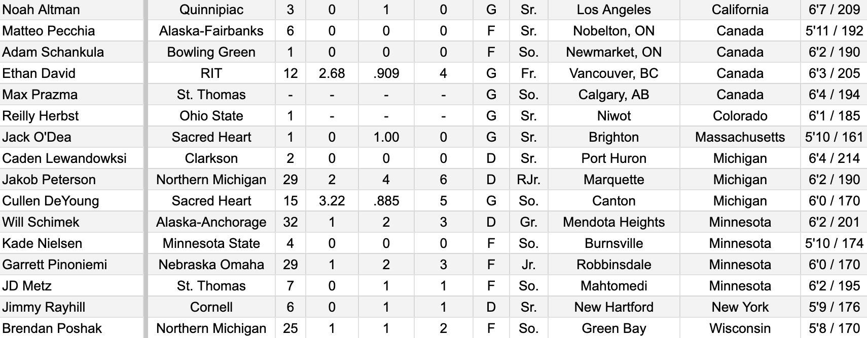 And there are plenty of other guys you could talk about too that are also doing well, like Adam Eisele (Minnesota State -> Ohio State), Evan Werner (Michigan -> Notre Dame), Jayden Perron (North Dakota -> Michigan), Ben Robertson (Cornell -> Michigan), Owen McLaughlin (North Dakota -> Boston Univ.), Walter Zacher (Robert Morris -> Canisius), Isaiah Norlin (Nebraska Omaha -> Colgate), and so many more.